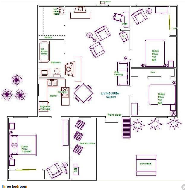 This furnished cabins is an excellent choice for those traveling with a larger family - 3 bedrooms and 1 bathroom provide plenty of room for all. Enjoy a fully equipped kitchen. Enjoy the wildlife meandering by while you sit on the deck and grill for your family.